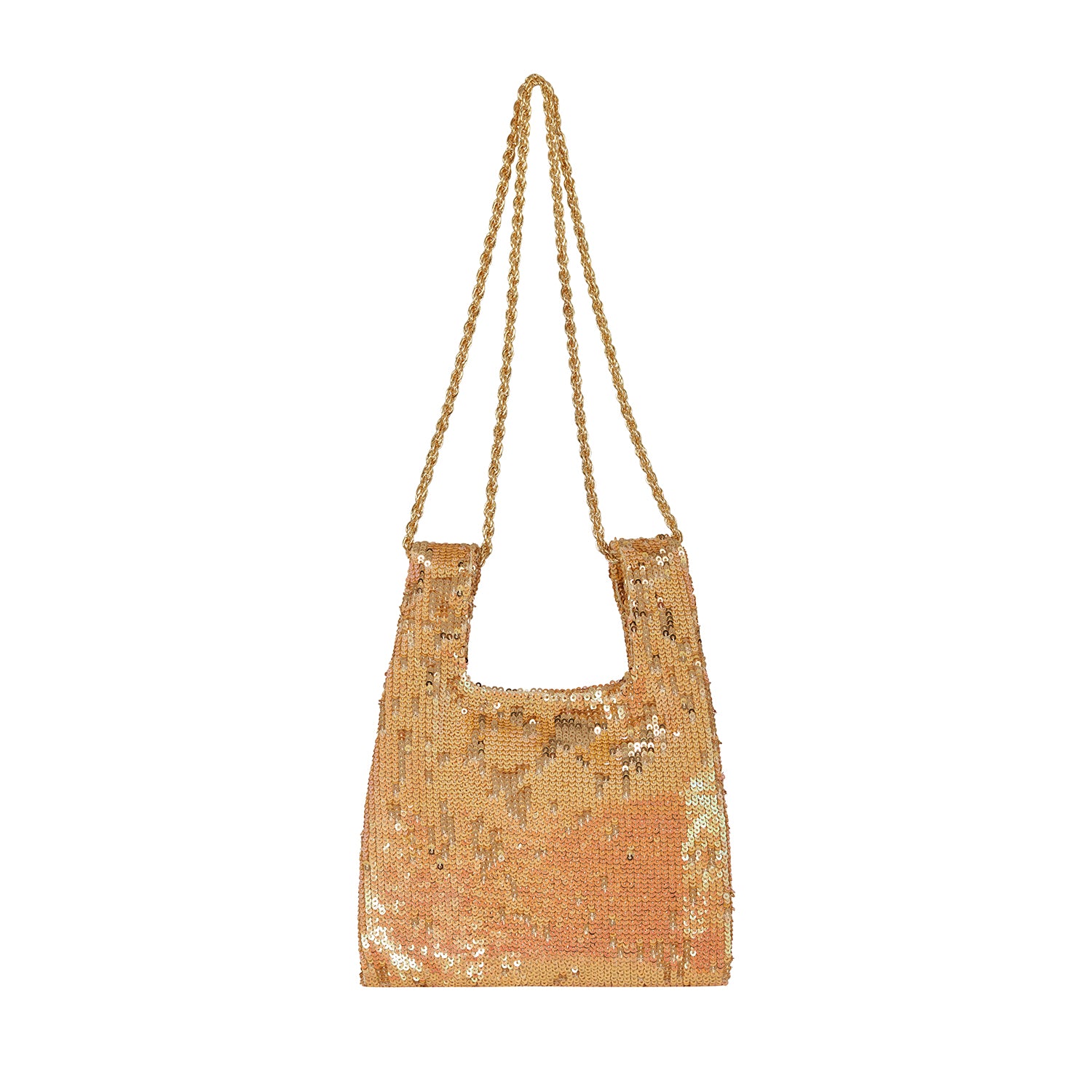 Papaya/ gold color sequined micro knot bag