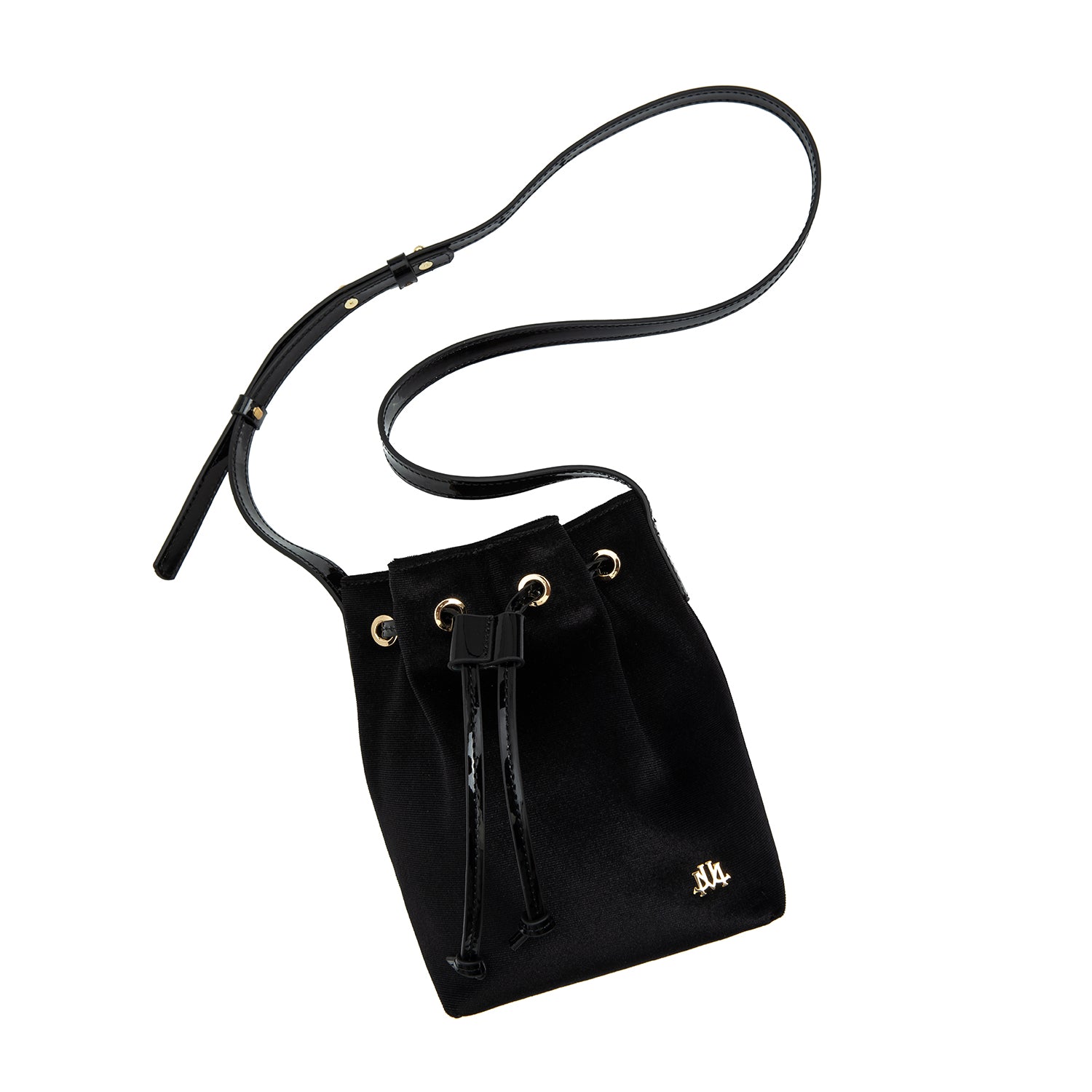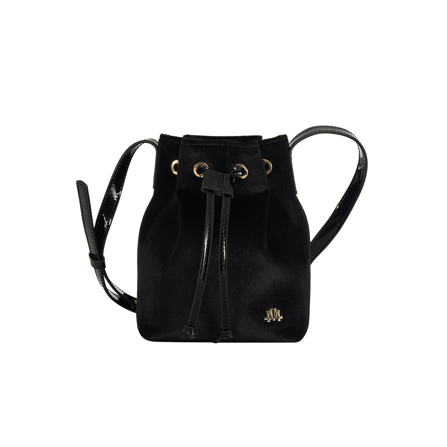 Black color velvet bucket bag100% cotton velvet, 100% patent leather