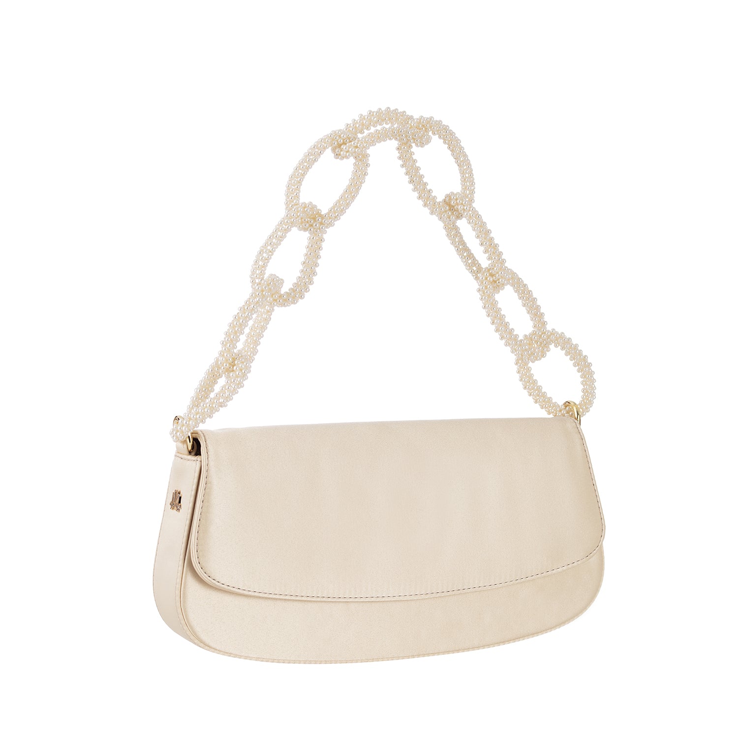 Cream color satin baguette bag