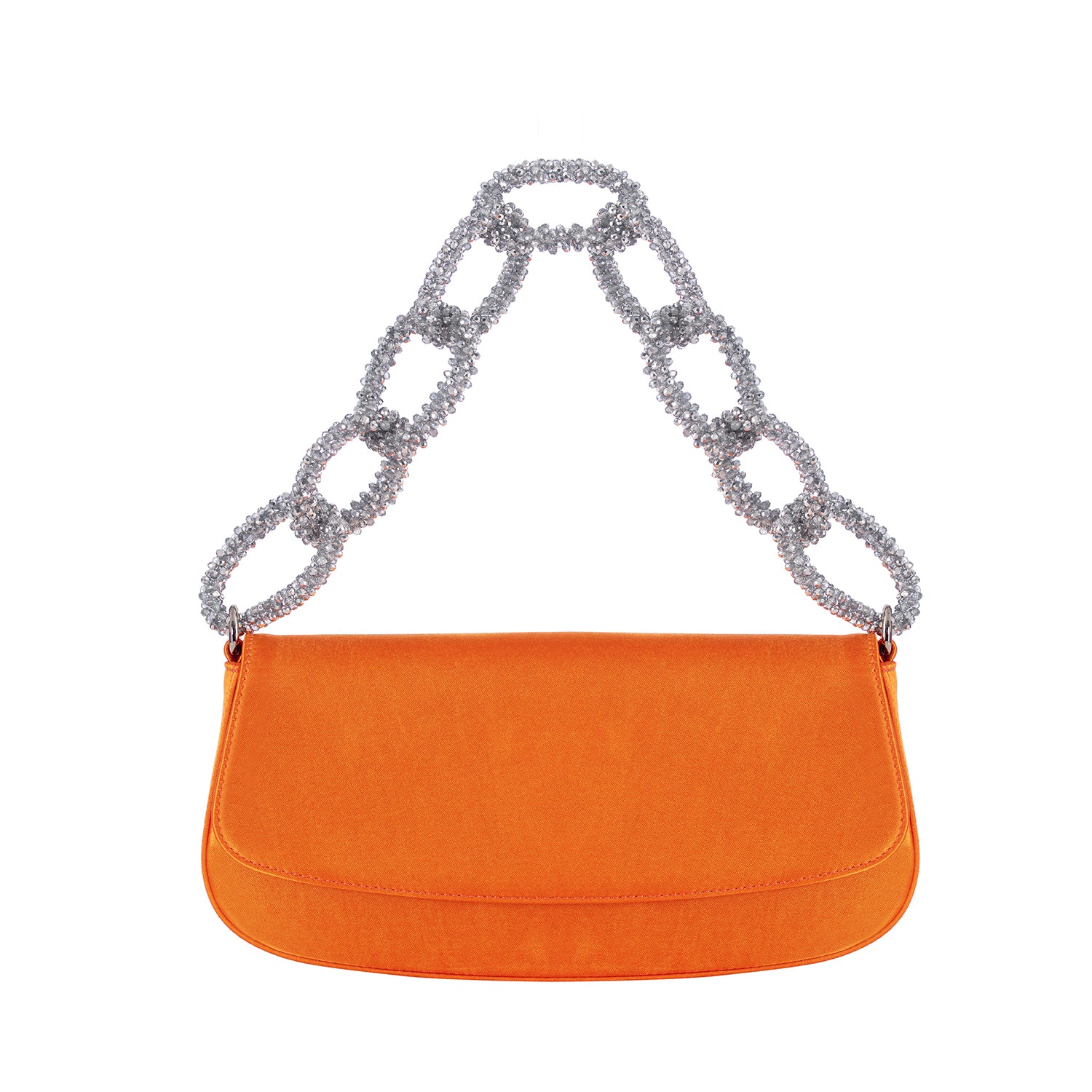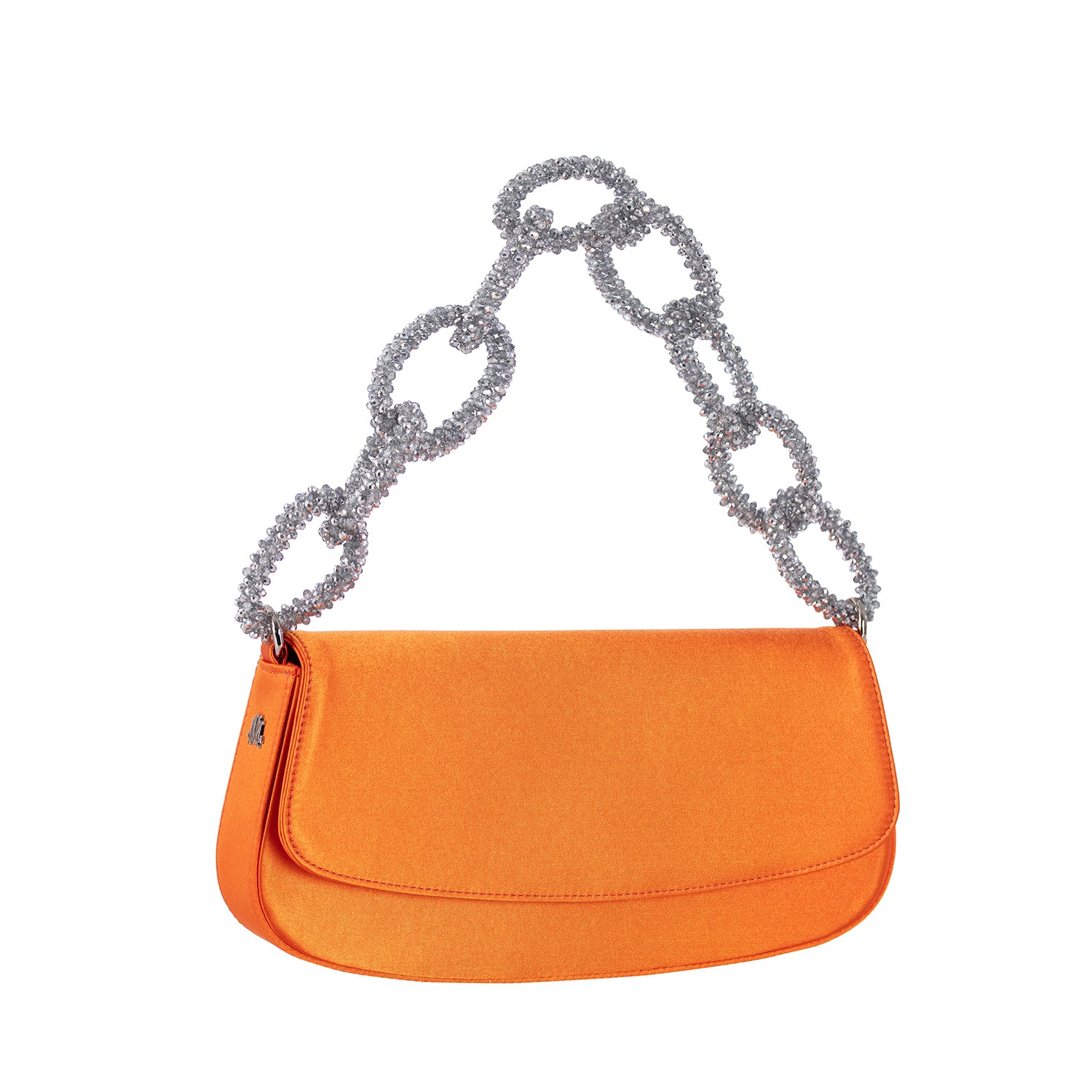 Tangelo color satin baguette bag